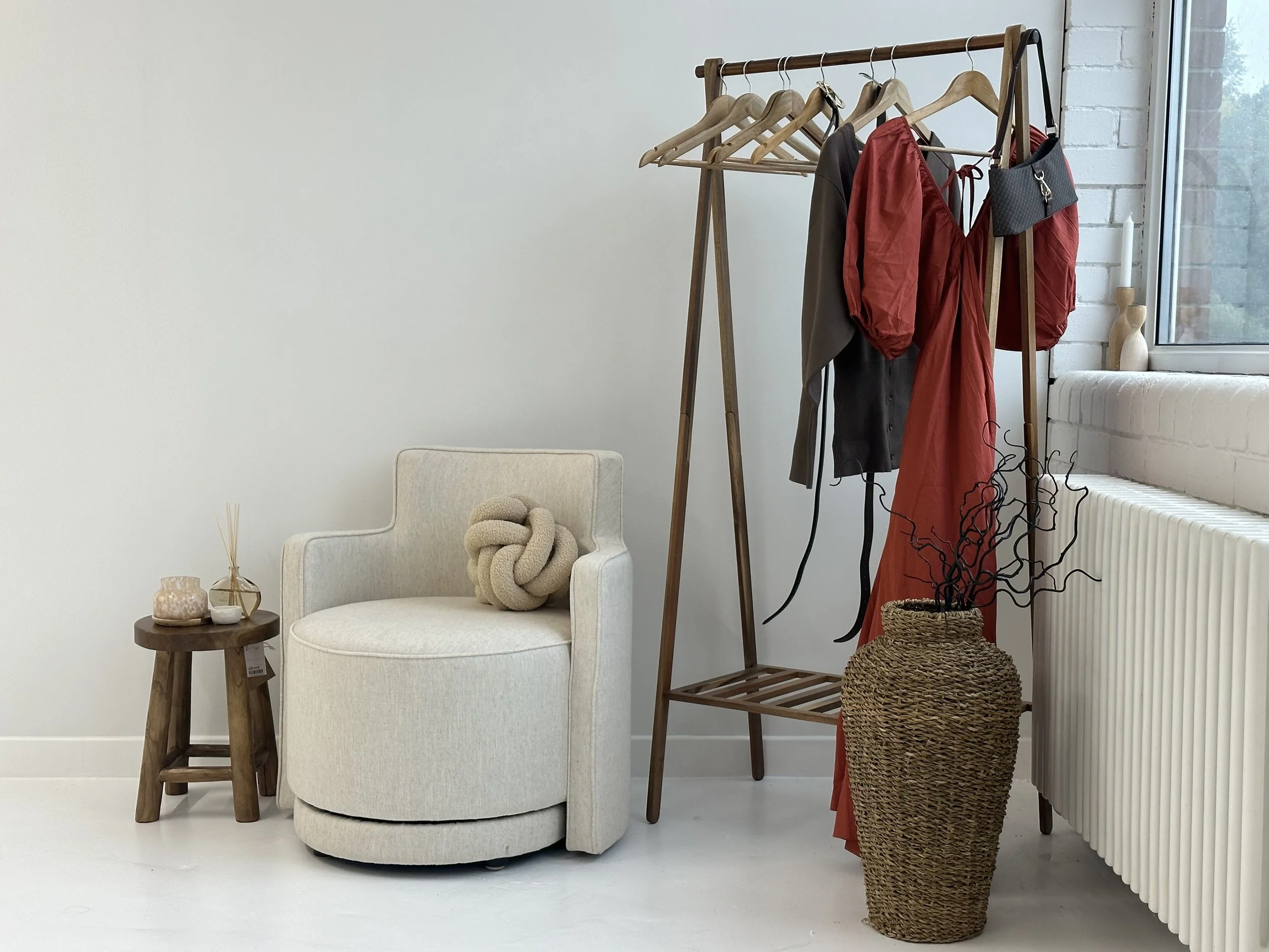 The loft is equipped with a makeup station, various hair styling tools, a changing room, clothing rails with hangers, a steamer, and a refreshment station. It’s designed to offer everything you need for a seamless creative experience.